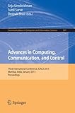 This book constitutes the refereed proceedings of the Third International Conference on Advances in Computing, Communication and Control, ICAC3 2013, held in Mumbai, India, in January 2013. The 69 papers presented in this volume were carefully reviewed and selected for inclusion in the book. They deal with topics such as image processing, artificial intelligence, robotics, wireless communications; data warehousing and mining, and are organized in topical sections named: computing; communication; control; and others.